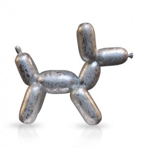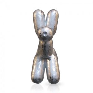 Balloon Dog sculpture by Niloc Pagen. Nicely finished with original silver leaf. The statue is made of synthetic resin. This luxurious art object enriches your living room.