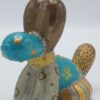 Deze prachtige keramische hond sculptuur van Urmila Massaar is een ware blikvanger voor elk interieur. Met zijn speelse en kleurrijke design brengt dit beeld een vleugje kunst en vrolijkheid in uw huis. De hond is gedetailleerd afgewerkt in een harmonie van brons, bruin, goud en turquoise tinten, die samen een levendig en toch elegant uiterlijk creëren. De versieringen met bloemenmotieven en stippen maken het geheel extra bijzonder. Perfect als cadeau voor kunstliefhebbers of als uniek decoratiestuk voor uw eigen interieur. Met een compacte afmeting van 17 cm lang, 7 cm breed en 12 cm hoog, vindt dit kunstwerk gemakkelijk een plekje in elke kamer. Het lichte gewicht van circa 0.2 kg maakt het eenvoudig te verplaatsen en te stylen naar wens.