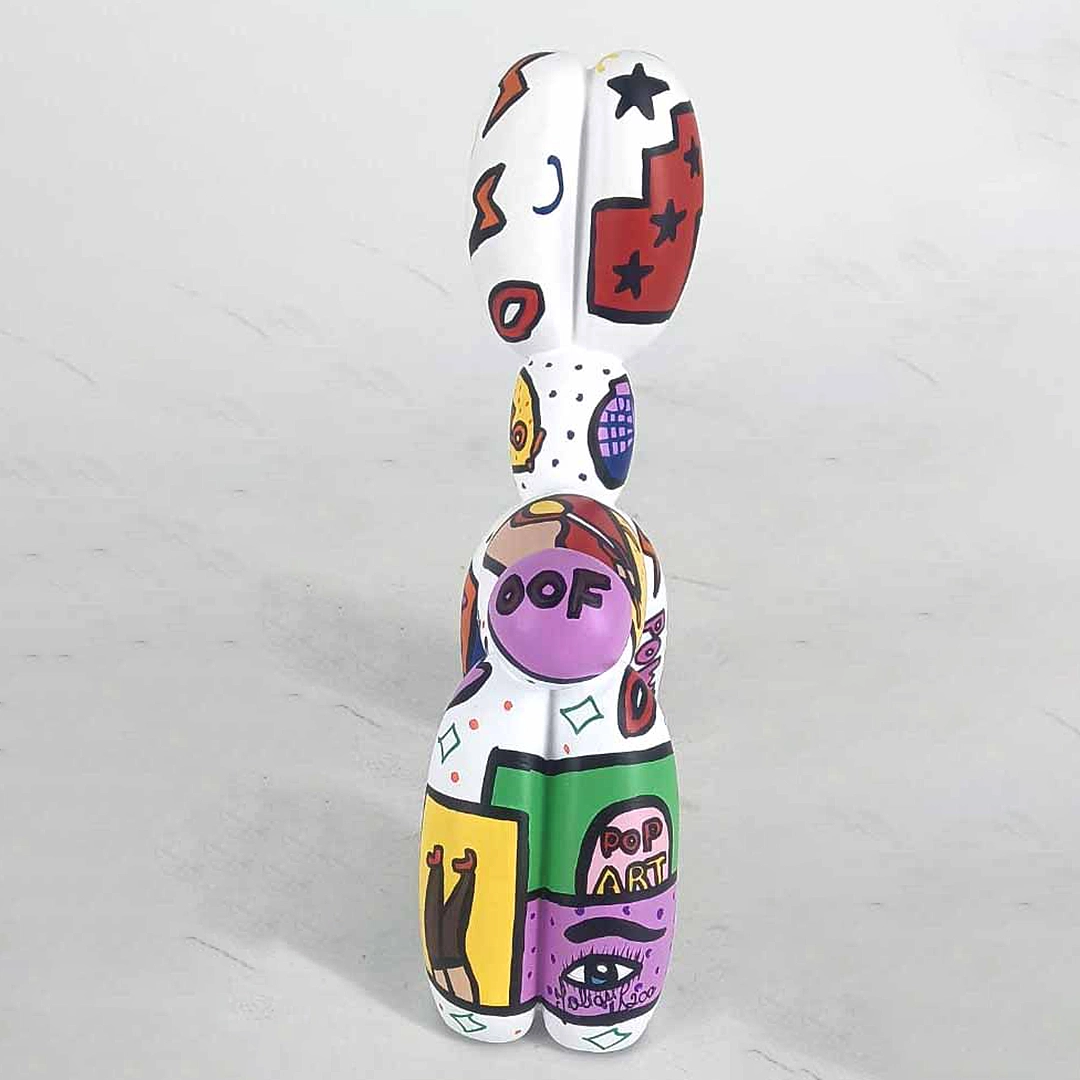Ajoutez une touche joyeuse et colorée à votre intérieur avec la sculpture unique Balloon Dog de Juliarte. Cette charmante figurine est peinte à la main, créant un style unique et personnel. Ses motifs ludiques et ses couleurs vibrantes en font un véritable accroche-regard, parfait pour les amateurs d’art moderne et abstrait.