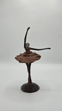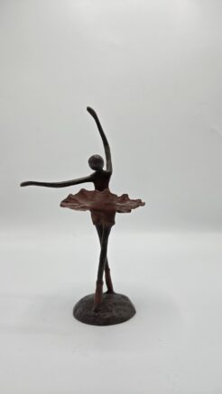 Het beeld is met vakmanschap gegoten uit brons en afgewerkt met een levendig roodbruin patina op het lijfje, rokje en de balletschoentjes. Deze diepe roodbruine tint staat prachtig met het warme, donkere brons van het lichaam. De combinatie van kleuren versterkt de beweging en geeft het kunstwerk een eigentijdse uitstraling, terwijl het toch een klassiek karakter behoudt.