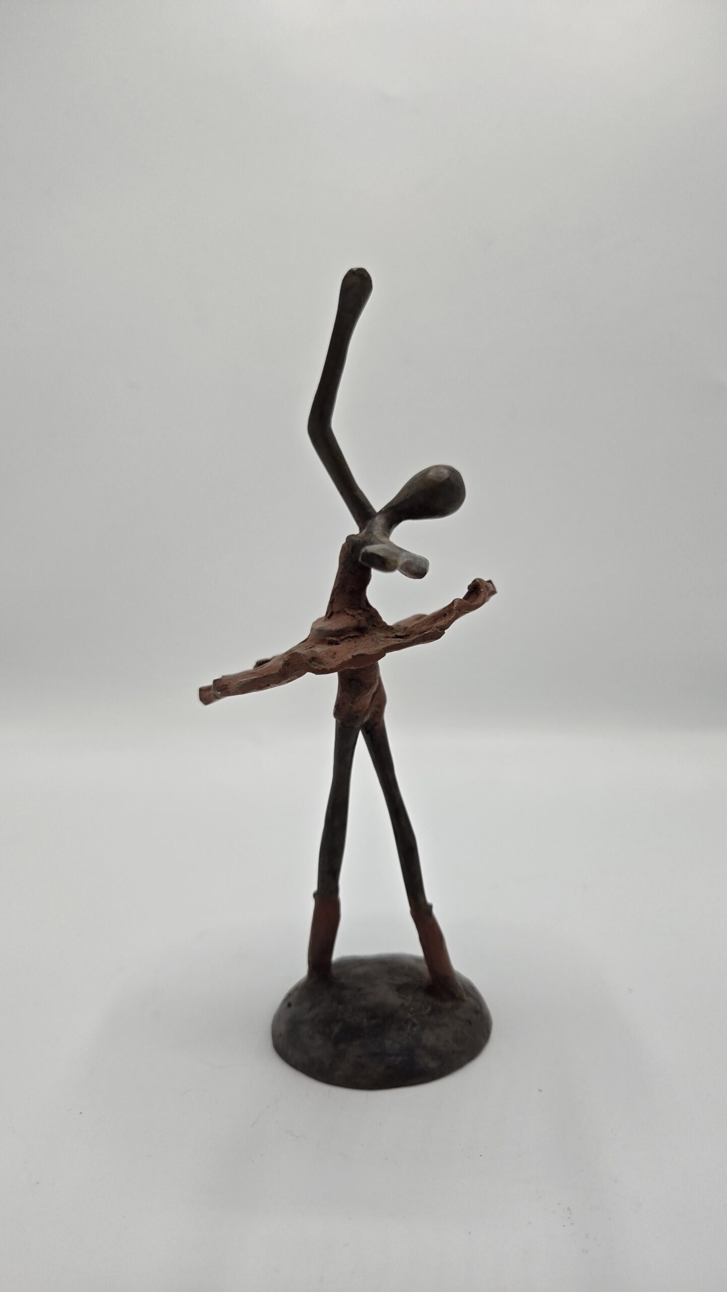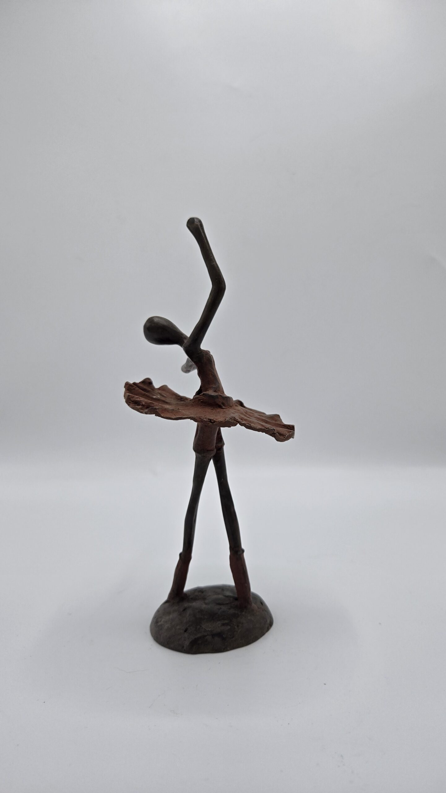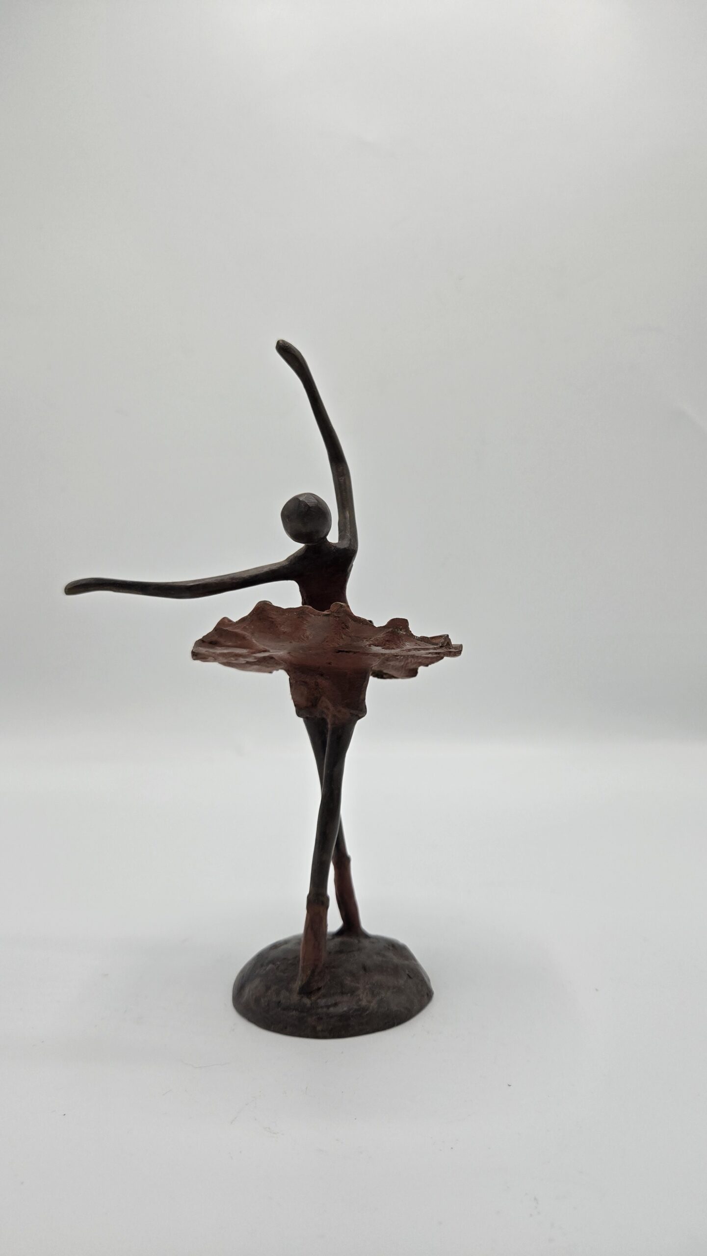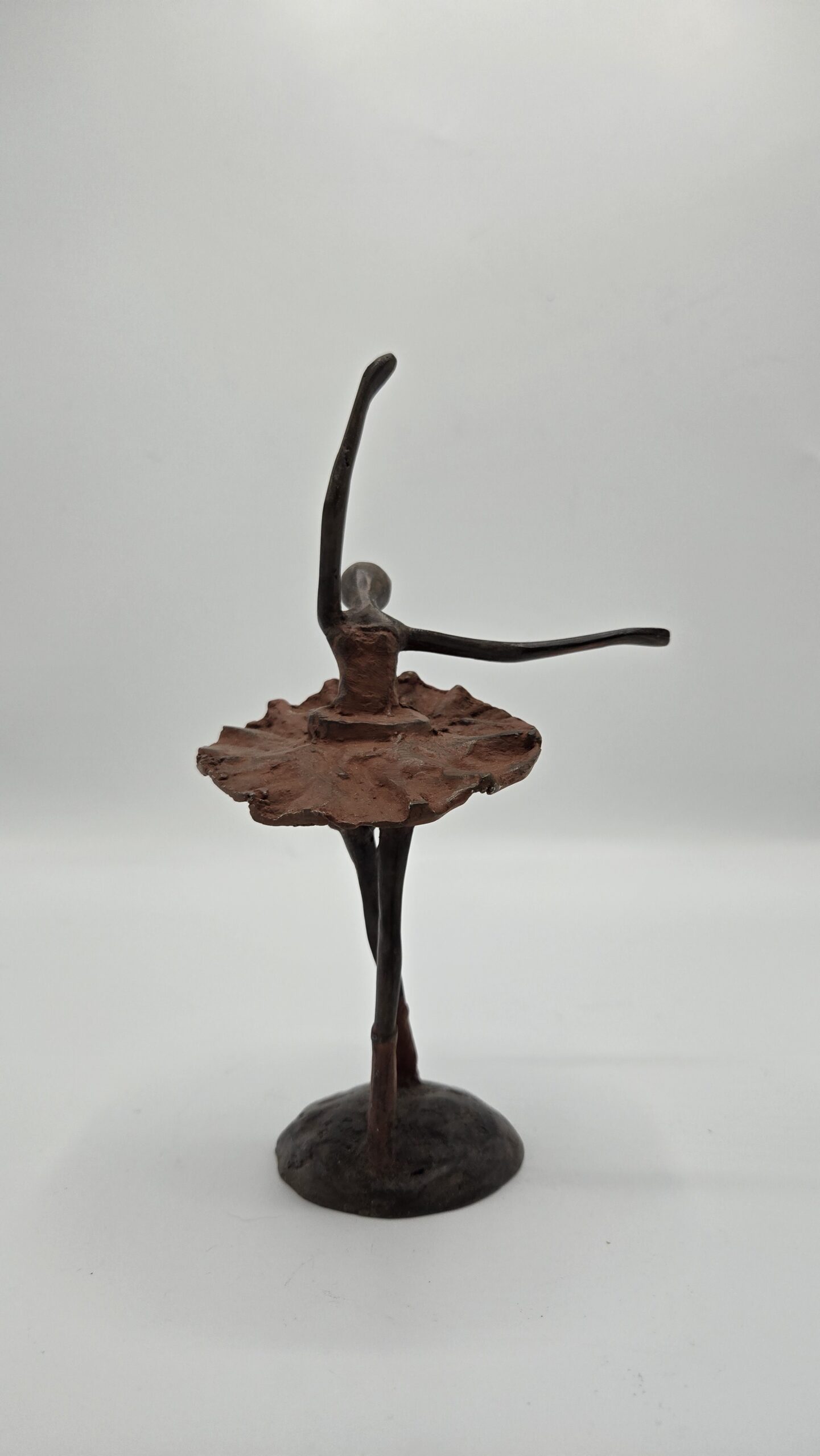 Dit stijlvolle bronzen beeld van een ballerina vangt de sierlijkheid en expressie van dans in een tijdloos kunstwerk. Met een hoogte van circa 20 cm straalt deze vrouwfiguur kracht, elegantie en balans uit. De ranke lijnen van het lichaam en de expressieve houding geven een dynamische indruk, alsof de ballerina midden in haar choreografie bevroren is.