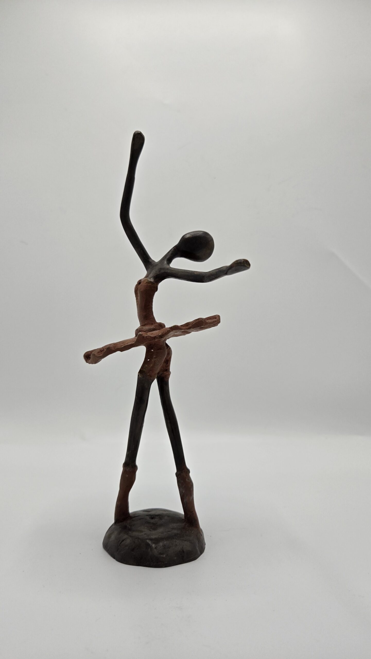 Met dit beeld haalt u een stukje verfijning in huis: een ode aan de schoonheid van beweging en de kracht van artistieke expressie, vereeuwigd in brons.