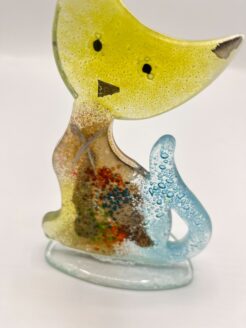 Légère, joyeuse et pleine de caractère, cette sculpture en verre dégage une élégance ludique qui attire immédiatement le regard. Avec sa tête curieuse légèrement inclinée et sa queue oscillante, ce chat est un charmant symbole d’originalité et de tranquillité.