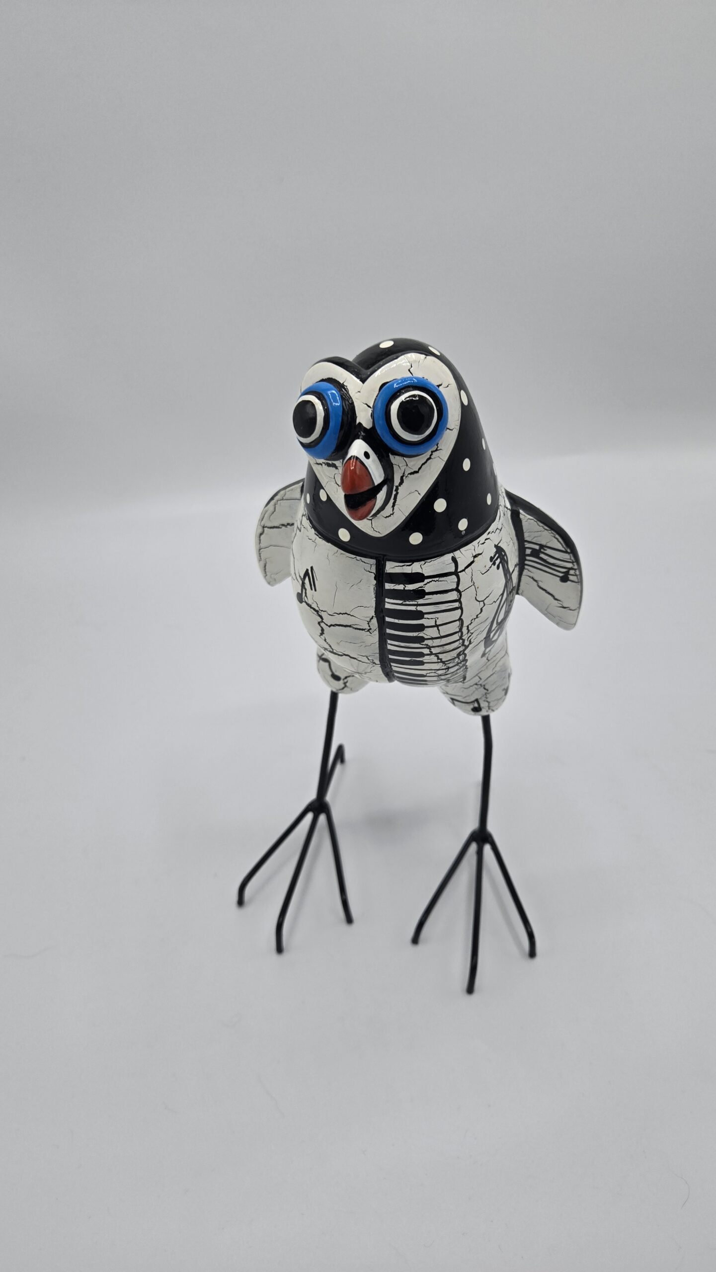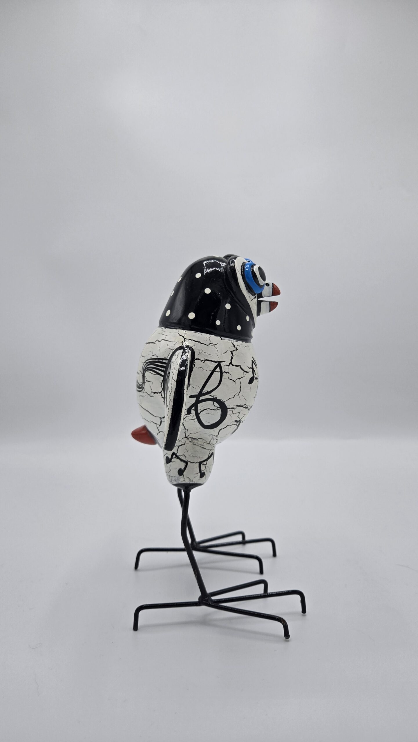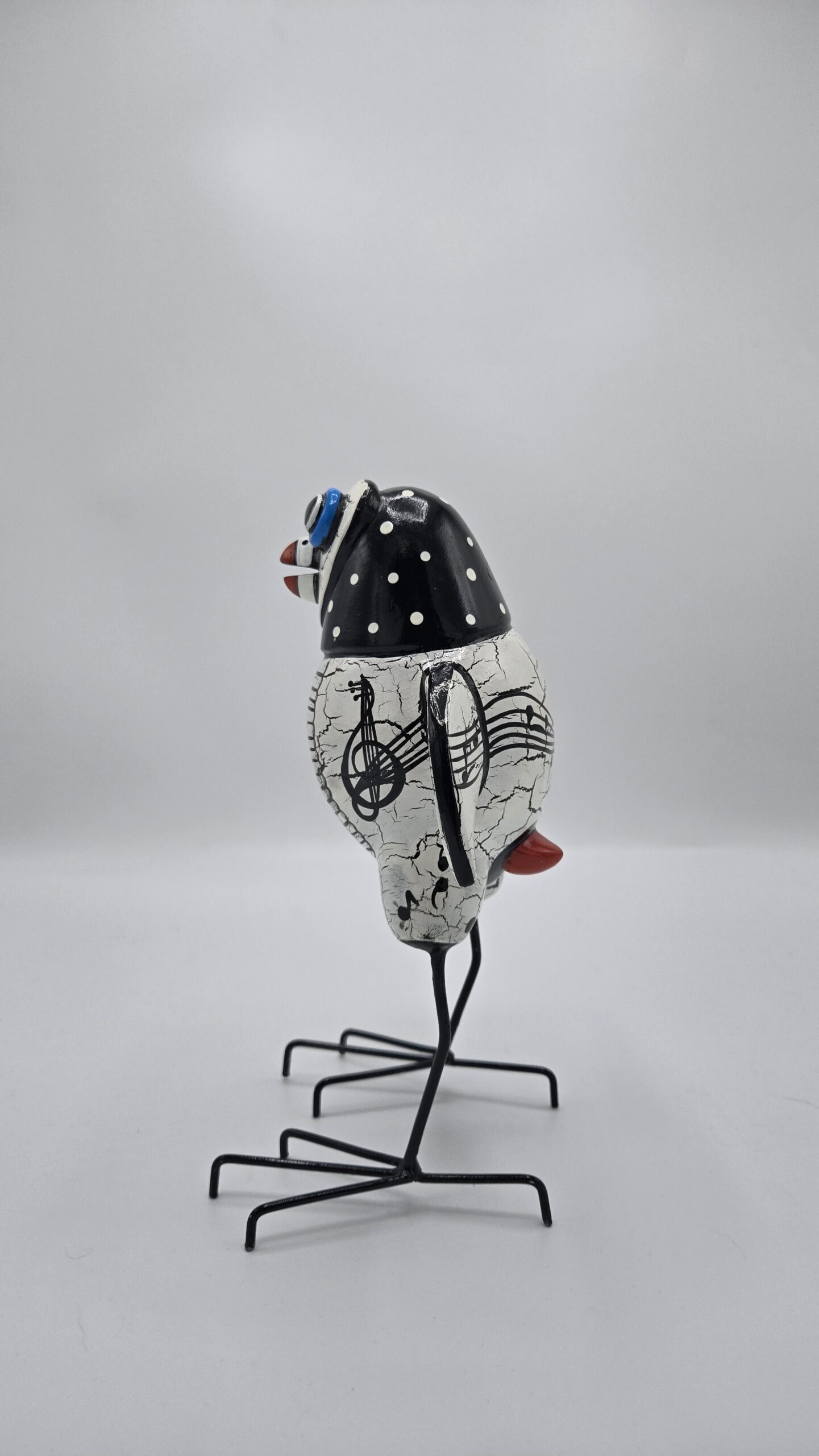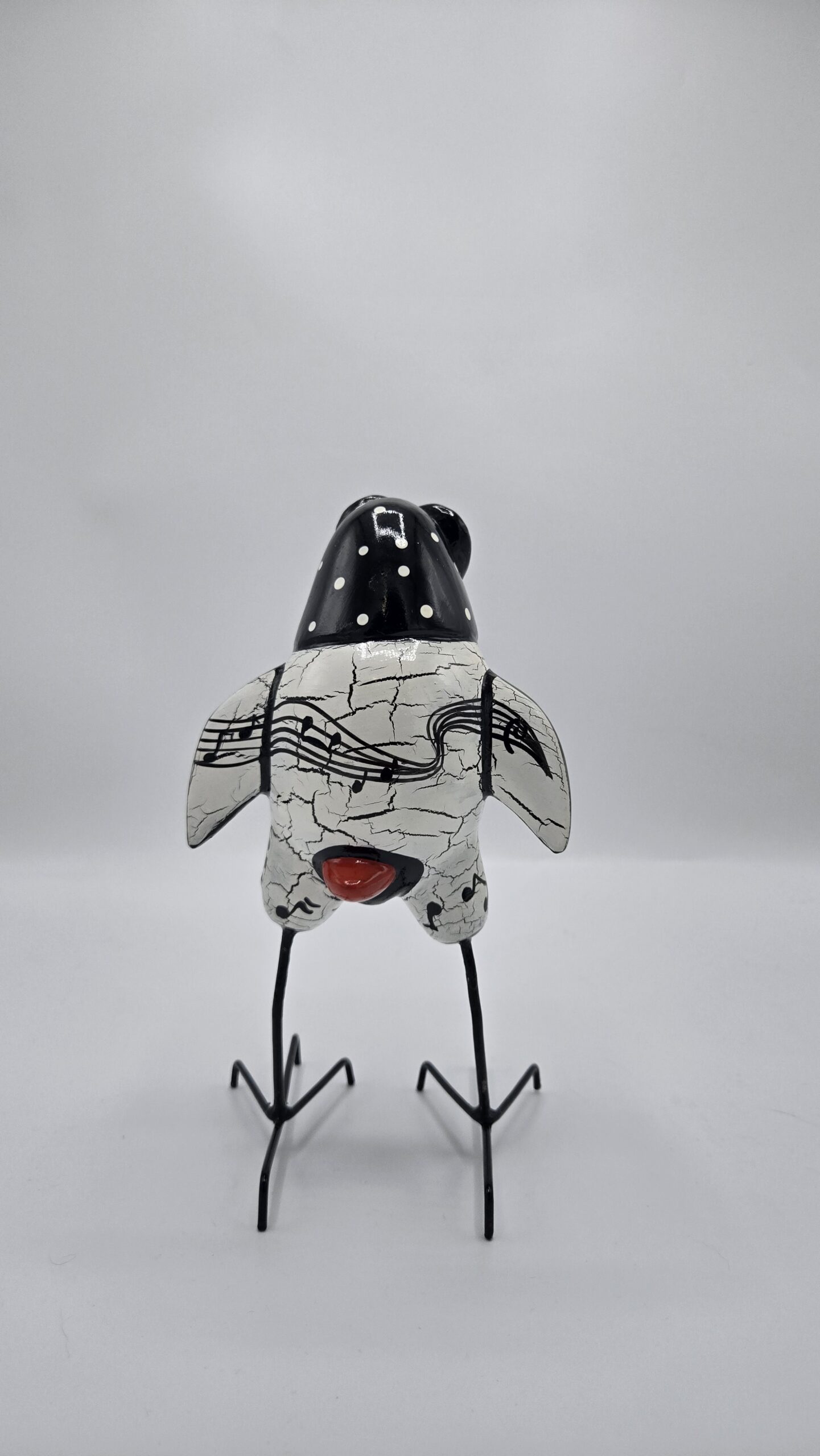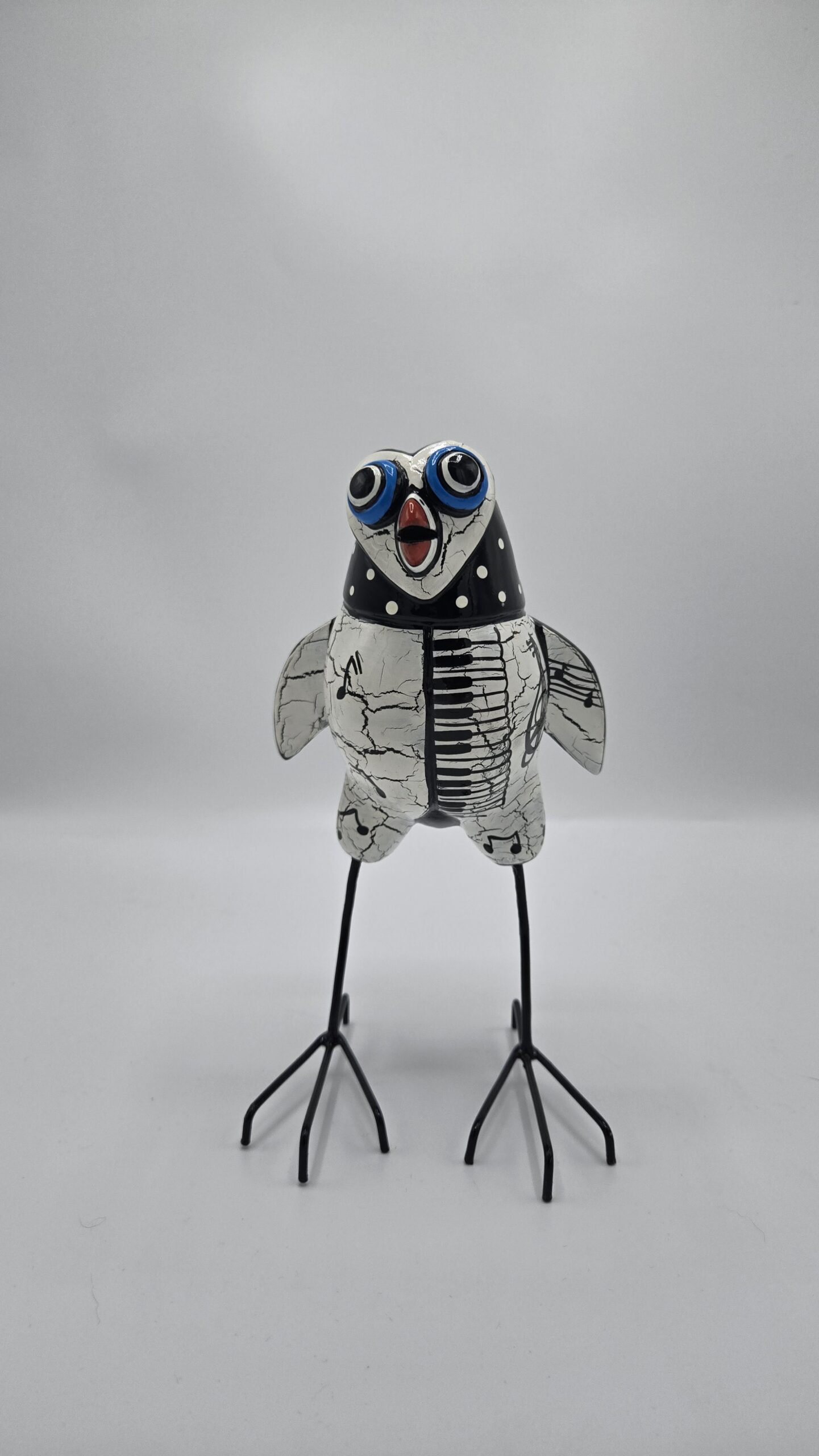 Avec ses grands yeux curieux et ses robustes pattes en métal, cette chouette respire le caractère et l’humour. Ses formes arrondies, ses couleurs contrastées et ses détails peints à la main font de cette sculpture un véritable accroche-regard dans tout intérieur ; elle est parfaite pour les mélomanes, les collectionneurs d’art ou les amateurs de décoration originale.