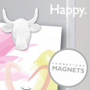 CowParade Magnet Blanc – La célèbre tête CowParade en aimant ! L’aimant est disponible en 5 couleurs.