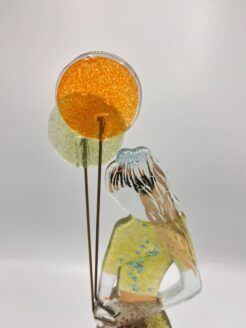 Une image pleine de douceur et de couleur – cette fille en verre avec des ballons dégage un sentiment d’élégance ludique et d’émerveillement. Le regard légèrement détourné et ses longs cheveux flottant au vent, elle semble prise dans un moment de rêverie silencieuse.