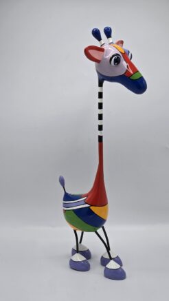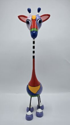 Gemaakt van hoogwaardige kunsthars en met de hand afgewerkt met felle kleuren in een bonte verzameling van paars, rood, blauw, oranje en groen. Deze Barca Giraf kijkt je met grote ogen nieuwsgierige ogen aan. Je krijgt een glimlach als je hem ziet.
