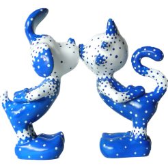 Lot est une belle sculpture d’art figuratif de Jacky Zegers. Ce chien bleu-blanc moucheté porte des sabots et peut être placé seul, mais aussi avec la chatte Mina.