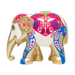 La statue d’éléphant « Love Wild, Love Free » est un chef-d’œuvre d’influences éclectiques, mélangeant harmonieusement des motifs vibrants de flore et de faune Navaho. Cette grande statue d’éléphant est plus qu’une pièce décorative ; c’est une représentation visuelle de nos liens d’amour inhérents.