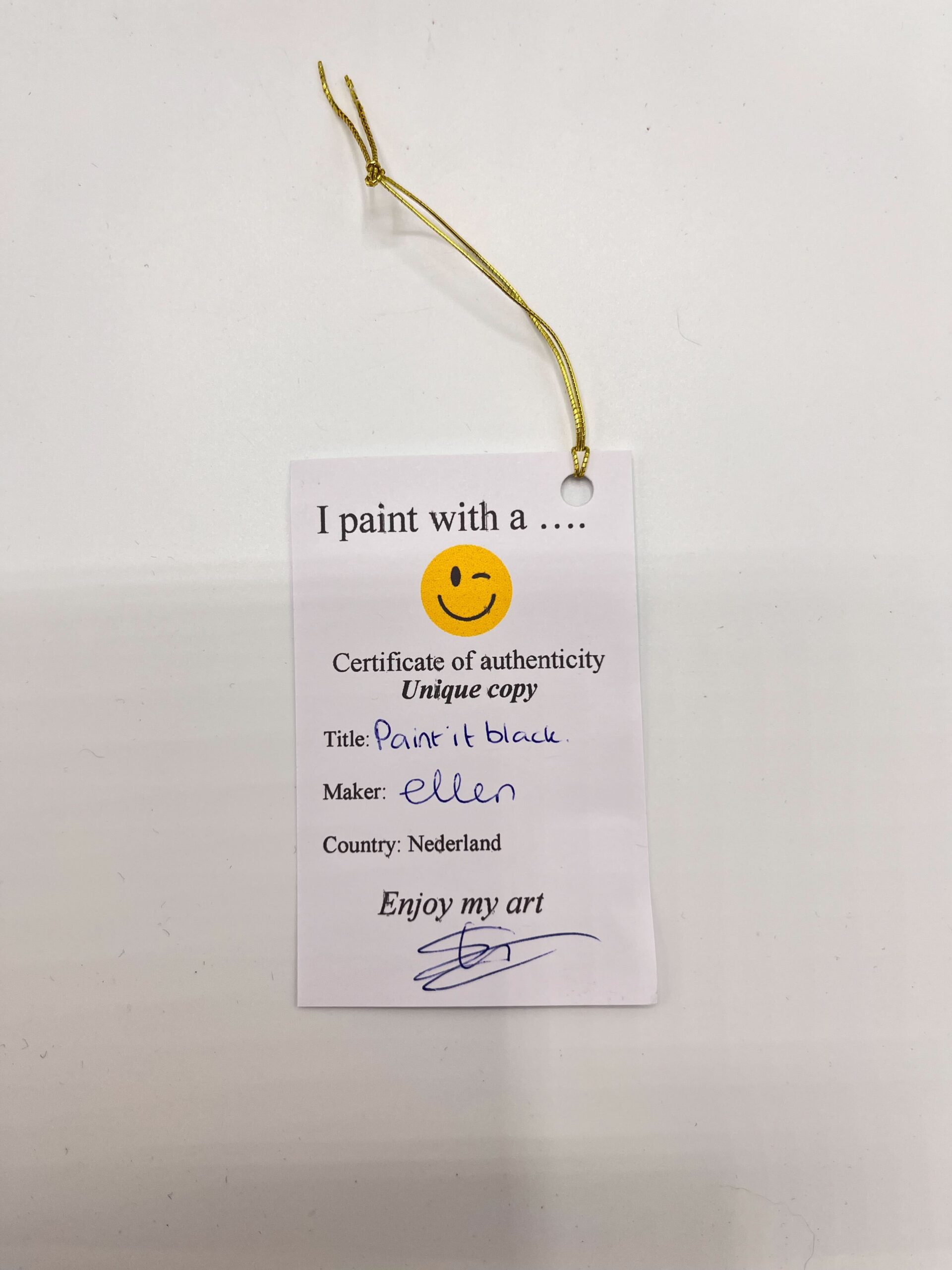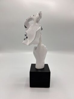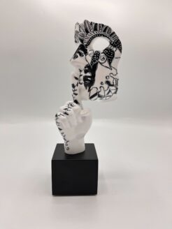 Affirmez votre personnalité avec cette sculpture unique, peinte à la main par l’artiste Ellen Moorman. Haute de 26 cm, elle respire le mystère et l’élégance grâce à l’utilisation contrastée du noir sur blanc. Les détails raffinés et les motifs abstraits lui confèrent une allure intrigante, presque cérémonielle.