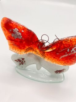 Capturez la puissance de la couleur et du symbolisme avec ce papillon en verre fait à la main. D’une taille de 12 cm, cet objet enchanteur est de petite taille mais d’apparence grandiose.