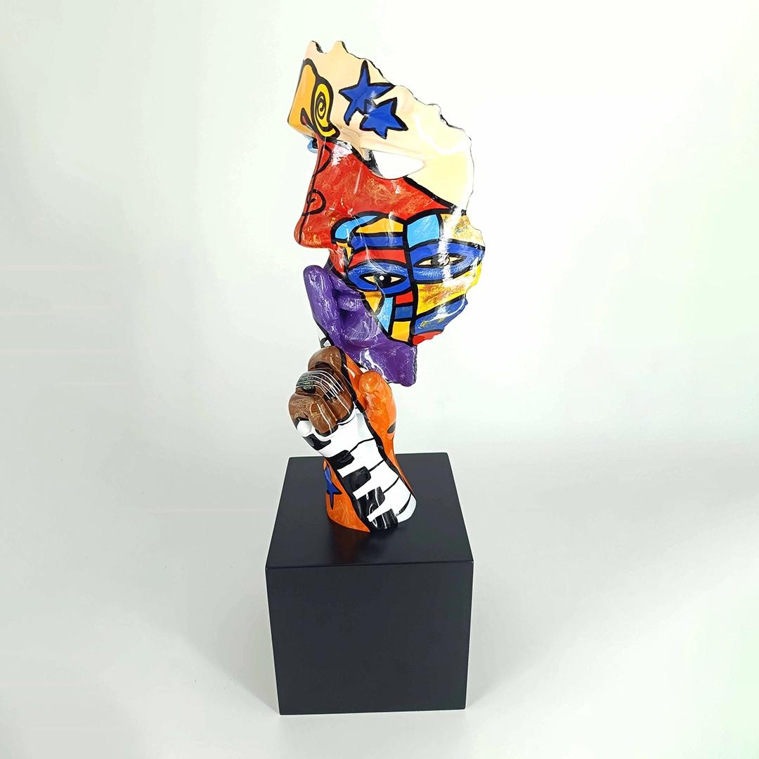 Avec ses 26 cm de haut et son socle compact de 8 cm x 10 cm, cette œuvre d’art est idéale pour une mise en valeur sur une table, une étagère ou un buffet. Son design épuré et ses couleurs vibrantes apportent une touche artistique à votre intérieur.