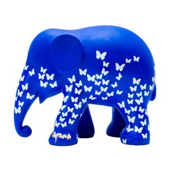 « Cet éléphant, dans une exposition itinérante, est pour moi ‘Ganesha’. J’ai transformé son léger moyen de transport mythique en papillon blanc (et j’ai introduit un nouveau moyen de transport divin encore plus léger qu’un rat). Ce Ganesha protège toute la parade des éléphants. et les éléphants en général. » – Theo Kazemier